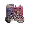 A stunning magnet featuring a traditional Dutch bicycle with the famous Canal Houses behind it.