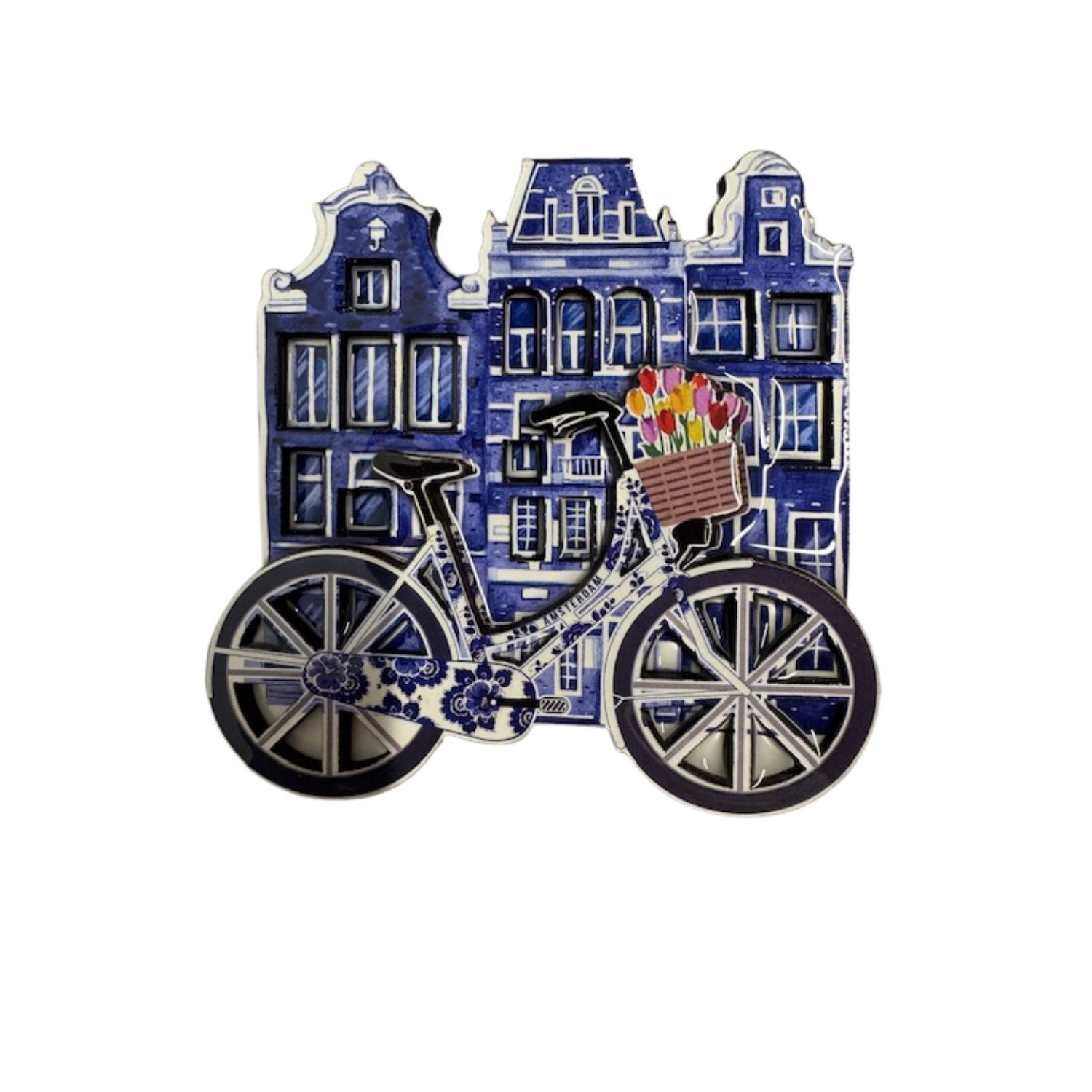A stunning magnet featuring a traditional Dutch bicycle with the famous Canal Houses behind it.